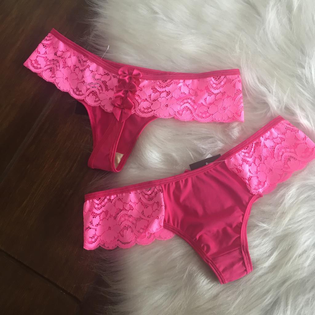 Calcinha modelo Fio dental, com laterais mais largas com renda.
